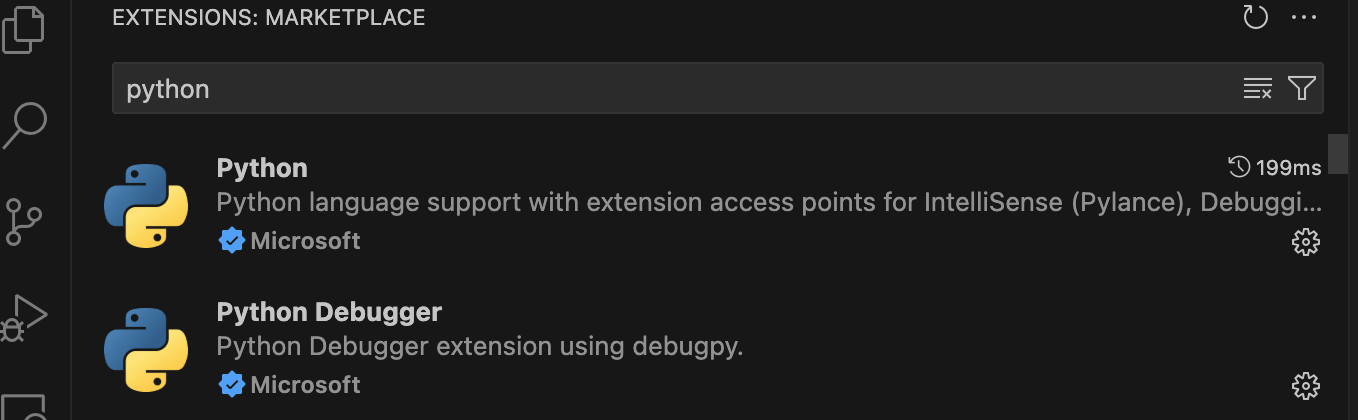 2. 검색창에 Python 입력, Python 확장 기능 설치.