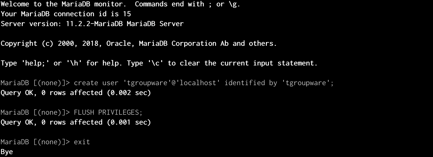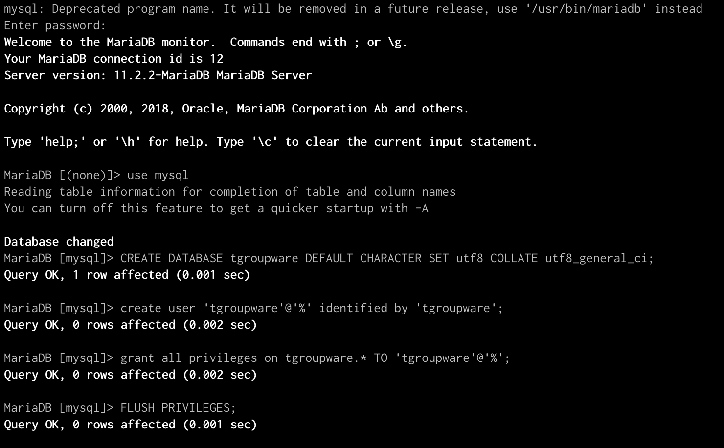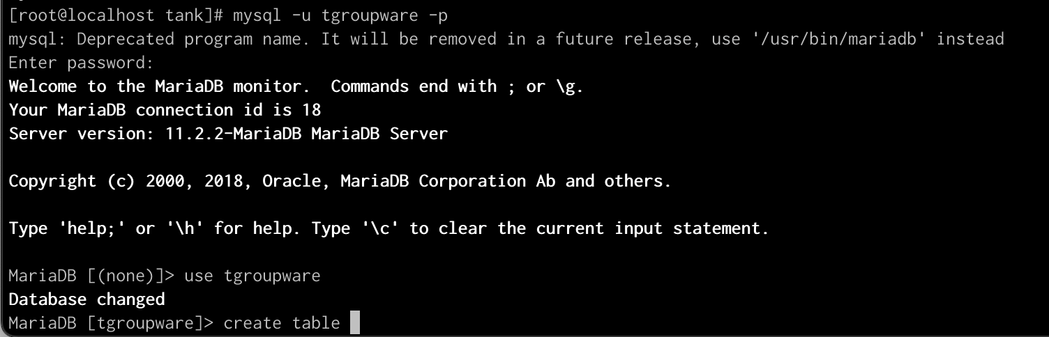 MariaDB [tgroupware]> source /home/tomcat/tgroupware/tables.sql