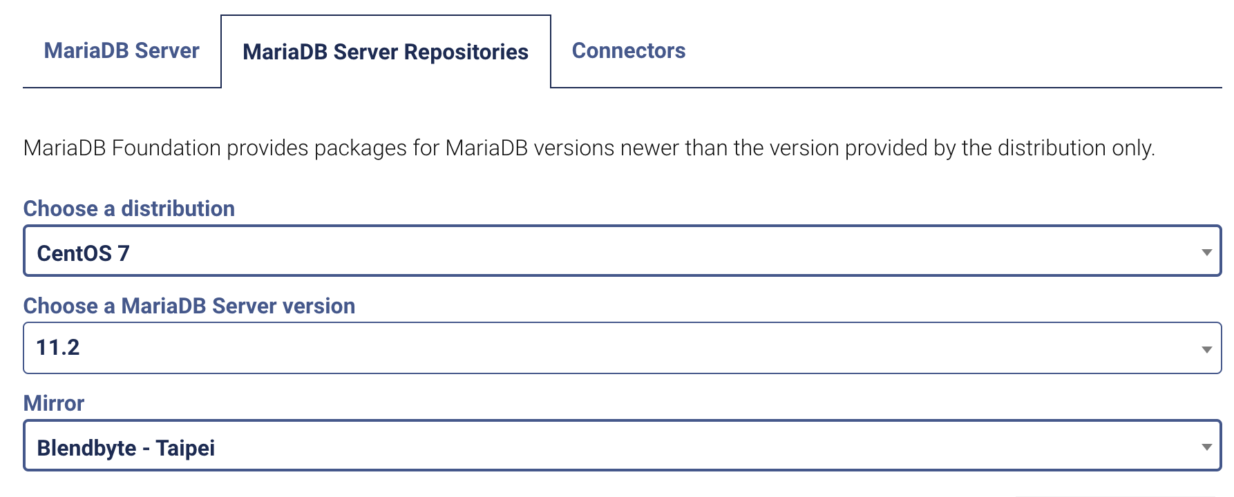 baseurl = https://tw1.mirror.blendbyte.net/mariadb/yum/11.2/centos/$releasever/$basearch